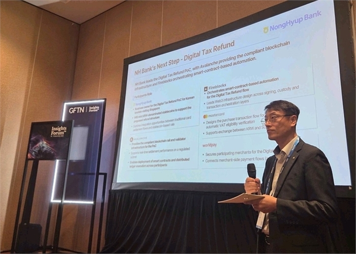 (서울=연합뉴스) 한지훈 기자 = NH농협은행은 해외 관광객이 물건을 구매한 뒤 부가가치세를 스테이블코인으로 환급받도록 하는 '택스리펀드 디지털화 시범사업(PoC)'을 추진한다고 13일 밝혔다. 부가세 수기 환급 절차를 블록체인 기술로 자동화하고, 기관 간 정산·환전 절차를 조율해 실시간 스테이블코인 환급 체계를 구축하